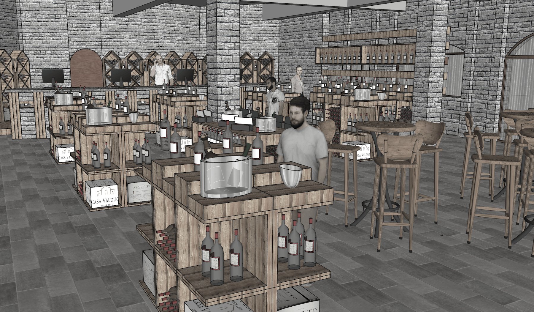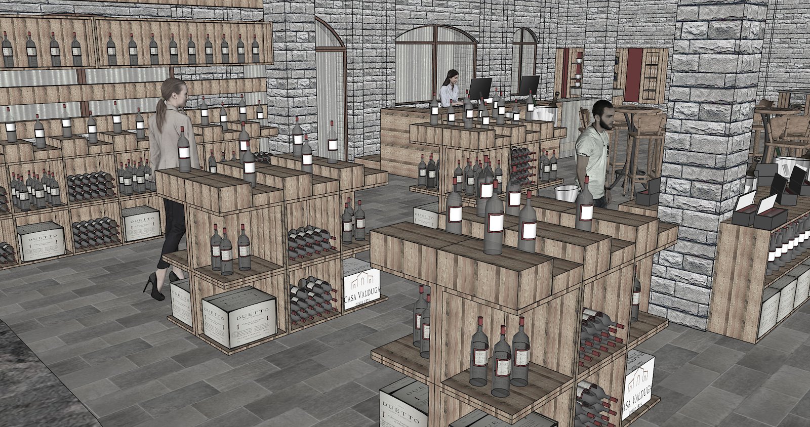 Essa foi a primeira remodelação da Loja de Vinhos da Vinícola Casa Valduga, localizada no Vale dos Vinhedos, Bento Gonçalves/RS, ajustando o layout da loja, adequando os expositores e o sistema de vendas, de forma a agregar valor aos produtos em comercialização e acelerar o processo de compra.